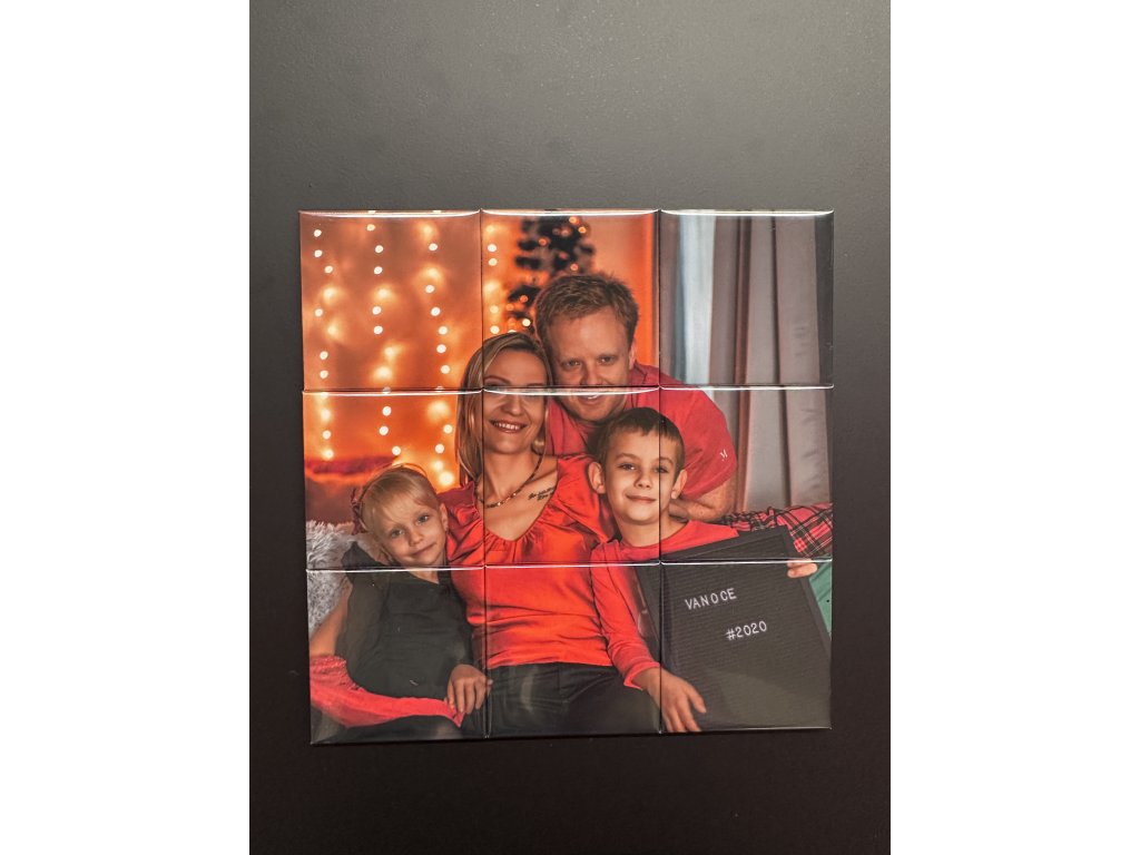 Puzzle z magnetek promění vaši fotografii v hravou dekoraci na lednici či magnetickou tabuli. Devět samostatných magnetků dohromady vytvoří jeden obraz, který můžete znovu a znovu skládat.
